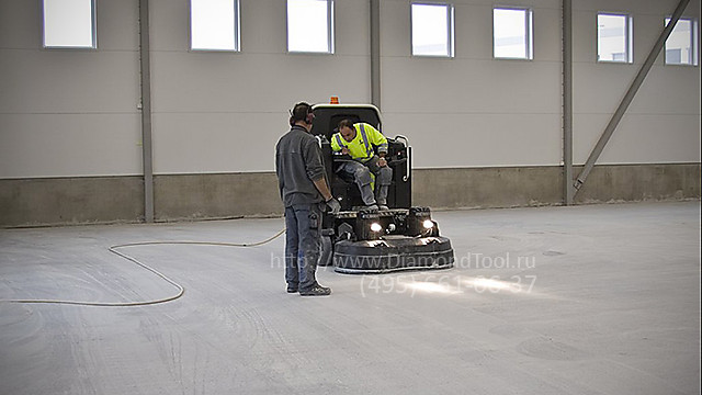- Шлифмашина по бетону с местом для оператора как для больших, так и для маленьких площадей.