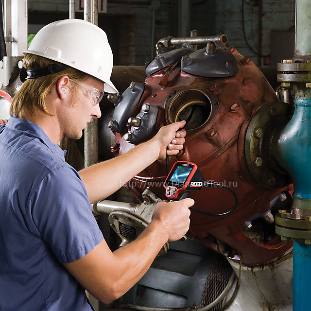 Телеинспекционная камера Ridgid micro CA-100 с монитором 3.5" разрешением 320x240 пкс для инспекции автомобильных двигателей, трубопроводов, водостоков, воздуховодов, дымоходов и других труднодоступных мест. Анодированная алюминиевая головка камеры с 4 светодиодами, вращением на 360 градусов вокруг оси и возможностью подключать к ней магнит, крючок или зеркало. Экран с пистолетообразной рукояткой и эргономичным управлением, позволяющим управлять телеинспекцией одной рукой.